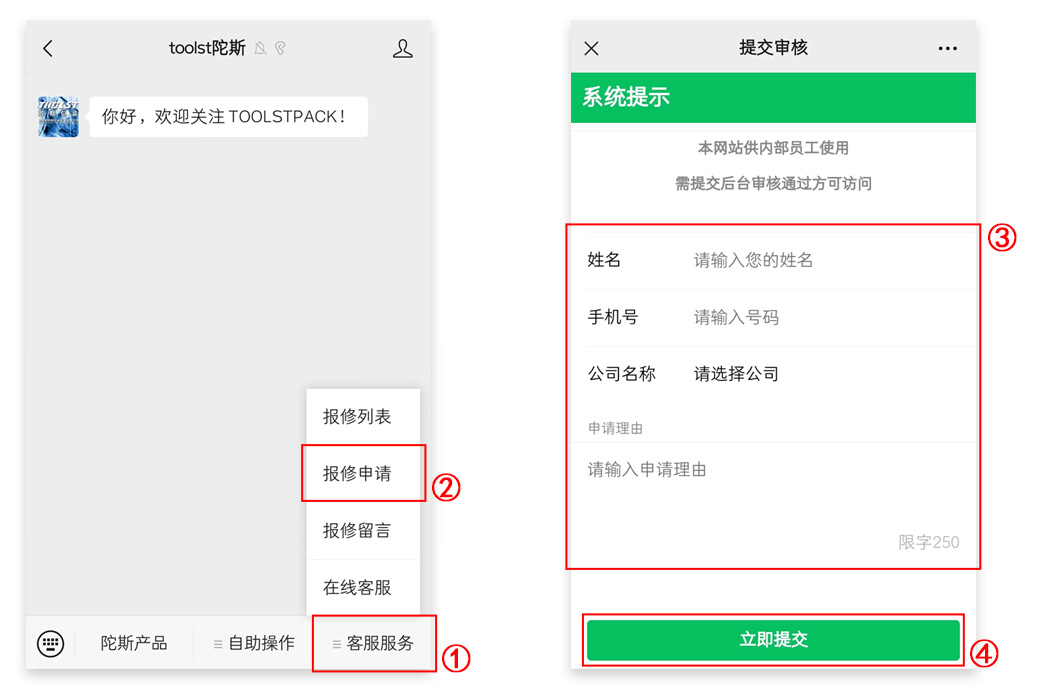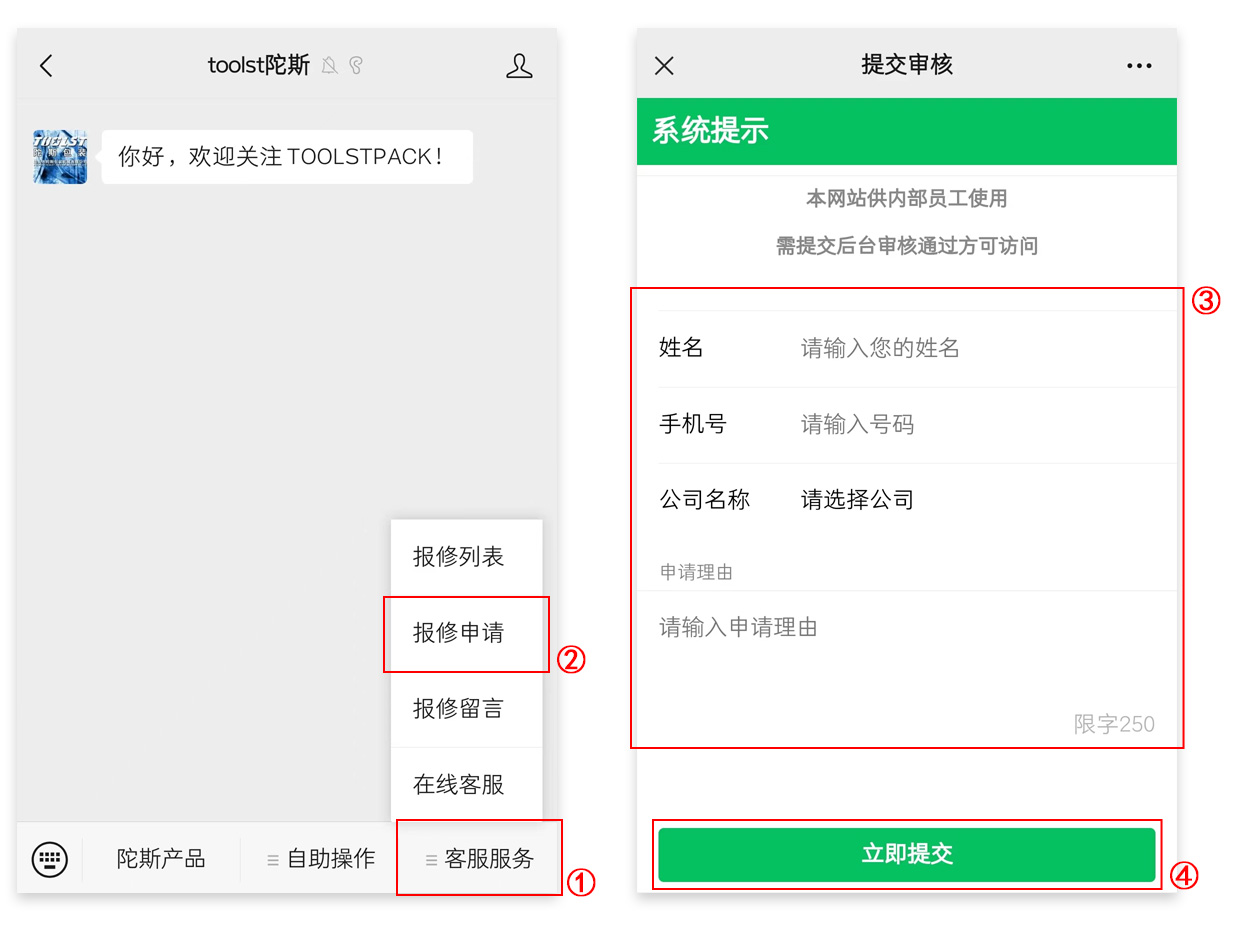 微信關(guān)注陀斯公眾號,公眾號上可提交報修申請